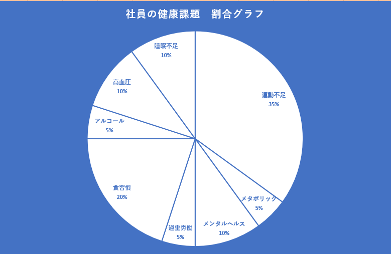 運動不足 35% | メタボリックシンドローム 5% | 睡眠不足 10% |